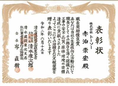 現場での安全活動が表彰されました。