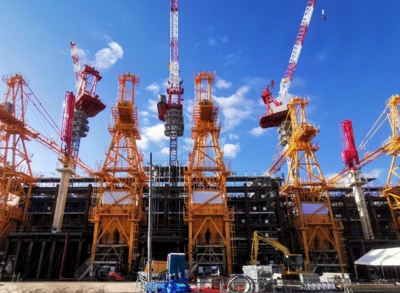 タワークレーン三号機組立状況(IHI JCC-V350SⅡ型 つり上げ荷重16.8t 自立高さ45m時)