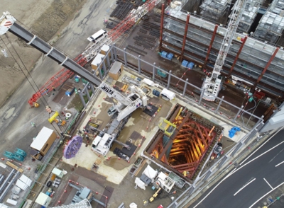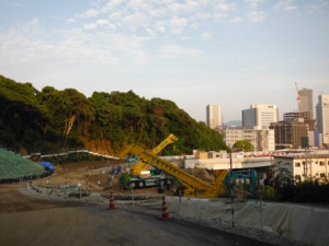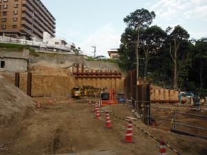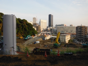 左が北側 山留めが見えるところがシールド工事発進立坑